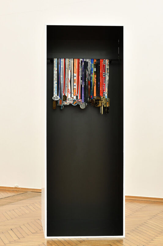Prezentowana praca, ukazująca kolekcję medali sportowych w przestrzeni minimalistycznego ekspozytora, w symboliczny sposób podejmuje temat indywidualnego wysiłku w kontekście wspólnotowego doświadczenia i społecznej rywalizacji. W kontekście wystawy praca dotyka roli prowincji jako przestrzeni, w której globalne procesy ulegają lokalnym reinterpretacjom. Istotnym elementem wystawy był koncept aranżacyjny polegający na prezentowaniu prac w specjalnie zaprojektowanych, białych ekspozytorach, których forma nawiązywała do struktury panoptykonu. To rozwiązanie podkreślało jednocześnie autonomię prac i ich wspólne uczestnictwo w narracji kuratorskiej, budując spójne pole interpretacyjne. Wbrew stereotypom, prowincja nie została tu przedstawiona jako obszar stagnacji czy izolacji, lecz jako przestrzeń twórczej reinterpretacji procesów globalnych i laboratorium społecznych przemian.