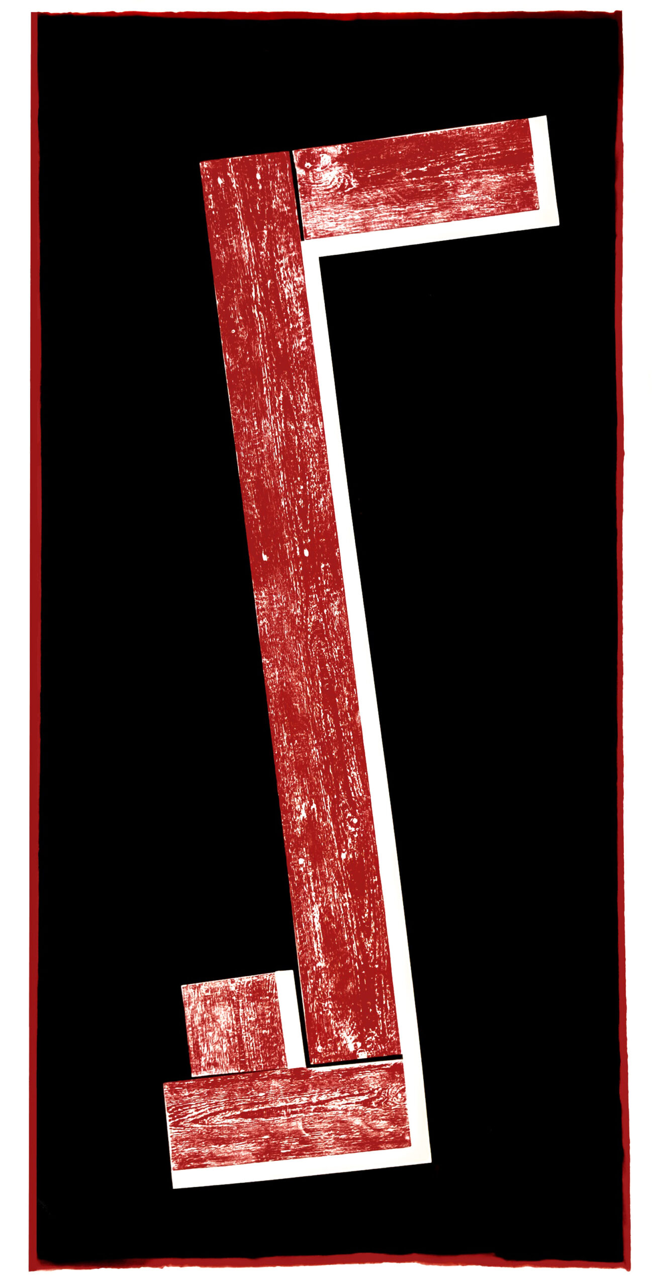 Praca oparta jest na zestawieniu surowych desek z wyraźnym rysunkiem struktury, tworzących częściowo przepuszczalną przegrodę, za którą wyłania się intensywna, symboliczna czerwień. Kolor działa jako siła napierająca, utrudniająca przekroczenie granicy i budująca napięcie pomiędzy otwartością a ochroną.