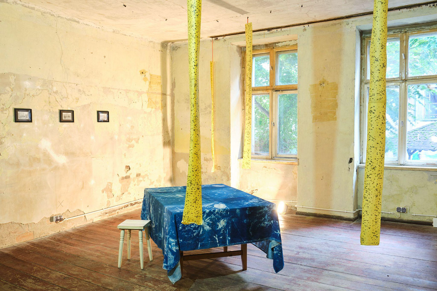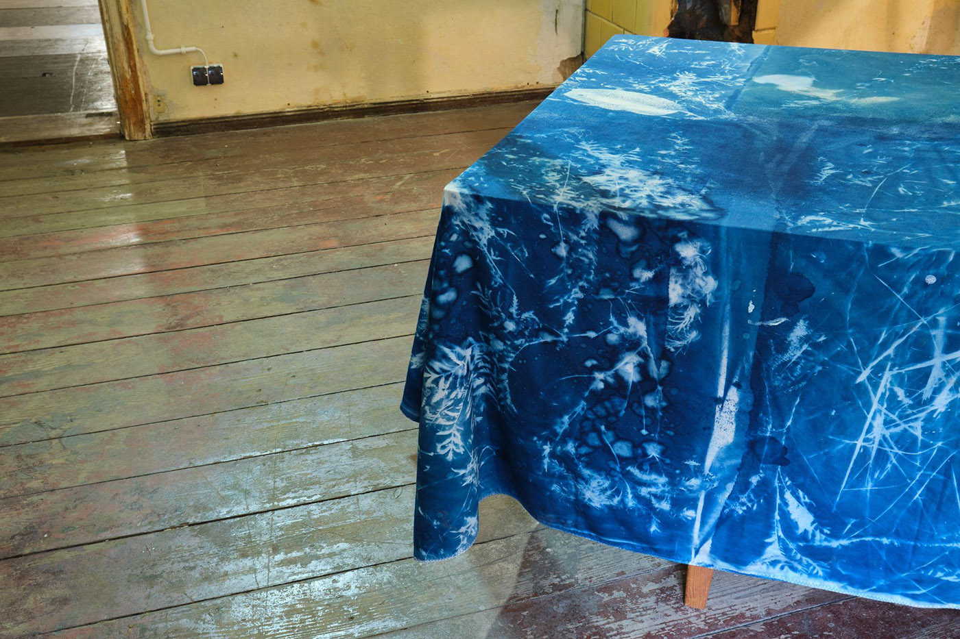 Cyjanotypia na obrusie.
