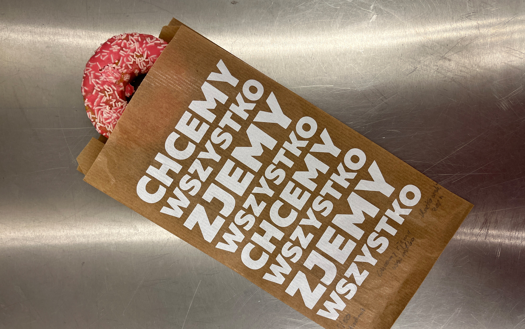 Technika: druk cyfrowy, farba emulsyjna, instalacja przestrzenna