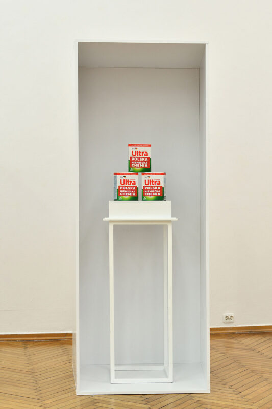 Artystyczna realizacja – trzy opakowania proszku do prania, ready-made, z nadrukiem w technice druku cyfrowego – stanowi komentarz do mechanizmów konsumpcji i procesów kulturowej samokolonizacji. Praca odnosi się do nacjonalistycznego przekonania o wyjątkowości własnego narodu, splecionego z kompleksem niższości peryferii wobec centrum. Punktem wyjścia jest mit popularny wśród polskich konsumentów: wiara w wyższą jakość niemieckich środków chemicznych w porównaniu z ich polskimi odpowiednikami. Istotnym aspektem wystawy był koncept aranżacyjny, oparty na strukturze panoptykonu, odnoszący się do relacji między jednostką, przestrzenią i władzą. Projekt wpisuje się w szerszą refleksję nad statusem peryferii jako przestrzeni lokalnych reinterpretacji globalnych zjawisk i ich społeczno-kulturowych konsekwencji.