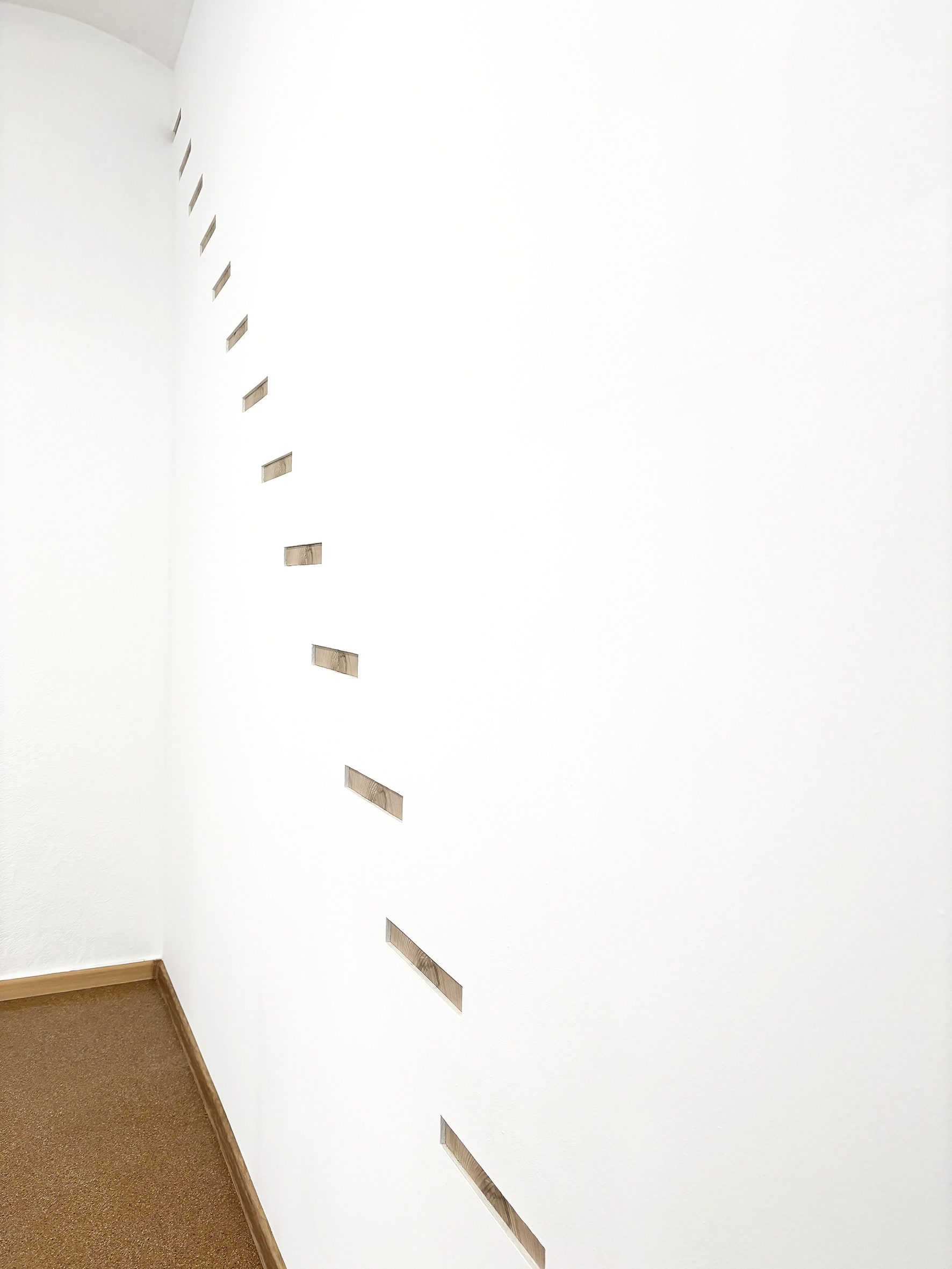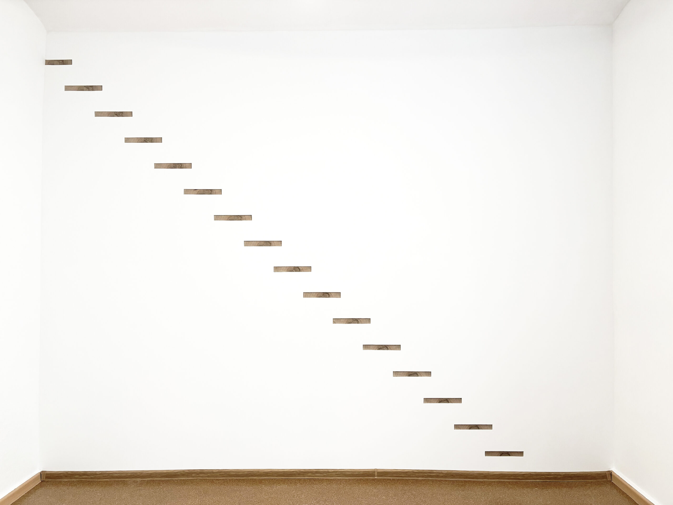 Praca przedstawia drewniane schody pochłonięte przez ścianę. Obiekt zbudowano w pustej przestrzeni, która w zamyśle ma wywołać niepokój.